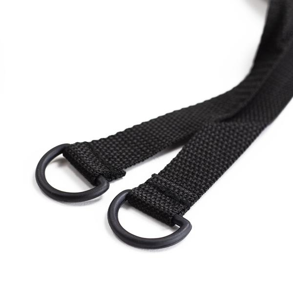 Priečky je možné plynule posúvať a po nastavení vhodných rozostupov je možné priečky zafixovať pomocou dvoch otvorov v každej z nich. Konce remienkov sú opatrené očkami pre zaistenie proti posunutiu rebríka.