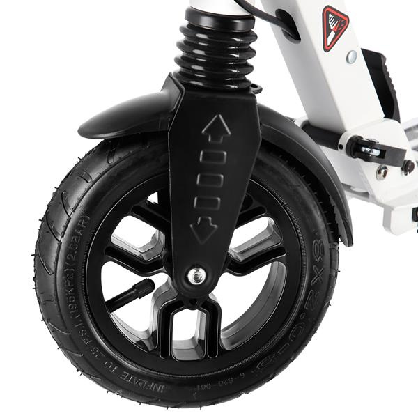 Systém odpruženia obidvoch kolies zvyšuje jazdný komfort. Tlmiče pohlcujú nárazy a jazda po nerovnom asfalte, alebo dlažobných kockách je príjemnejšia a tichšia. Robustný zadný blatník slúži ako prítlačná brzda, ktorá ešte podtrhuje brzdný účinok kotúča. Samotný kotúč je brzdený jedným piestikem, ktorý je mechanicky ovládaný lankom z páčky na riadidlách, tie sú opatrené gumovými rukoväťami, ktoré zaisťujú pevný a pohodlný úchop. Veľké kolesá sú osadené ložiskami ABEC 9 a pumpovaciou pneumatikou s priemerom 200 milimetrov. Táto kombinácia zabezpečuje rýchlu, plynulú a bezpečnú jazdu. Pumpovanej pneumatiky navyše spolupracujú s tlmičmi a tiež pohlcujú povrchové nerovnosti. Blatník na prednom kolese a skladacie stojanček sú už len pomyselnou "čerešničkou na torte", ktorá přizpívá k maximálnemu možnému komfortu z jazdy a k celkovej radosti zo samotného použivania modelu MH208T.