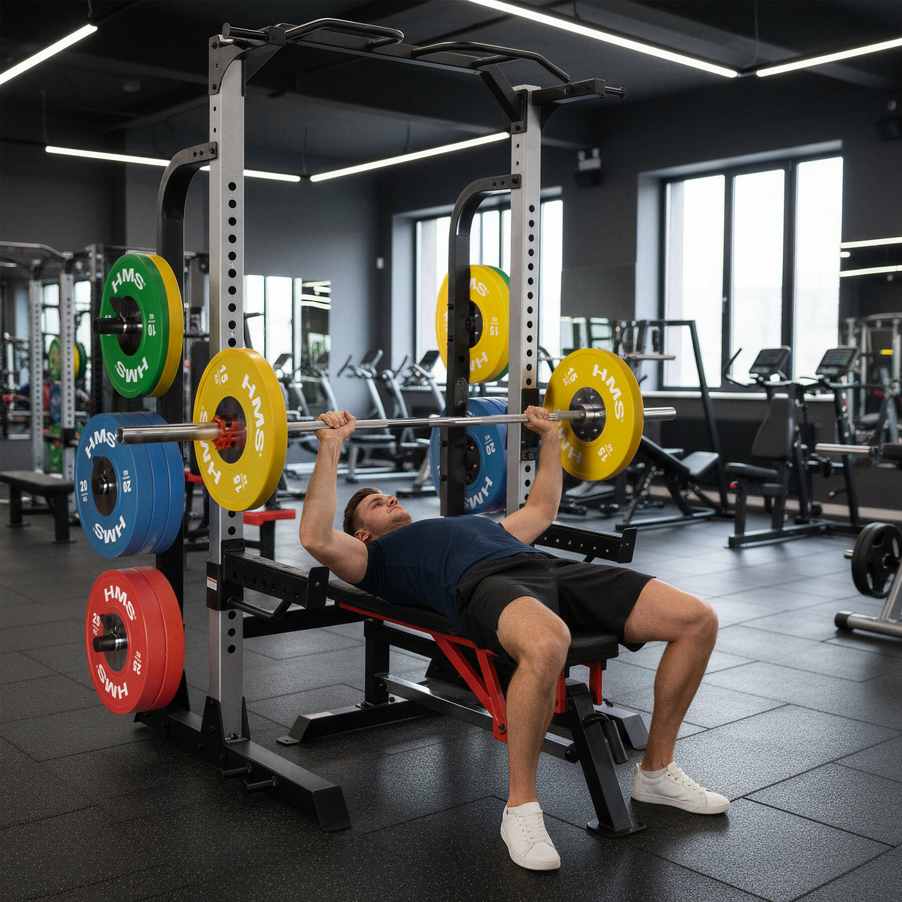 Vďaka pevnej základni a premyslenej geometrii poskytuje half rack HMS Fitness stabilnú oporu aj pri maximálnom zaťažení.